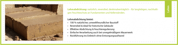 Feuchtigkeit an Fundamenten und Kellerwänden ist ein häufiges Problem, das eine effiziente und dauerhafte Lösung erfordert. Als Baustoff mit jahrhundertealter Tradition bildet Lehm eine natürliche und äußerst wirkungsvolle Alternative zu synthetischen Dichtstoffen. Historisch bewehrt überzeugt Lehm in diesem Kontext nicht nur mit hervorragenden Abdichtungseigenschaften, sondern auch durch seine leichte Handhabung, sowie Nachhaltigkeit und Reversibilität: Nach der Nutzung kann die Lehmabdichtung problemlos mit dem Erdreich vermischt werden, wodurch aufwendige Entsorgung oder Ausbaumethoden entfallen.