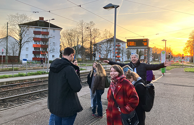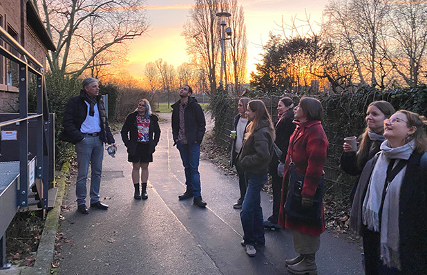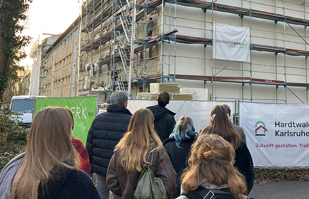 Bei einem Becher Glühwein blickten wir gemeinsam auf das vergangene Jahr zurück, bevor wir uns auf den Weg zu einer unserer Baustellen machten. Dabei besichtigten wir den Baufortschritt bei der Aufstockung und Kernsanierung eines Mehrfamilienwohnhaus, welches wir für die Hardtwaldsiedlung Karlsruhe geplant haben.