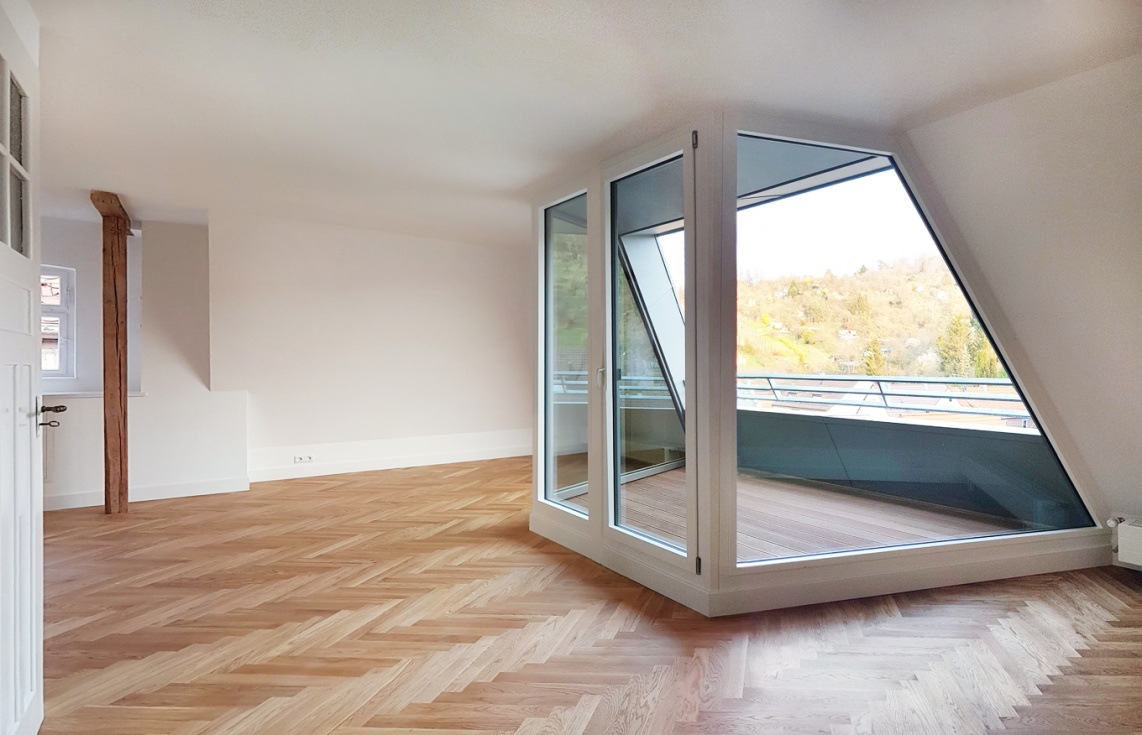 fluidlab war mit der Gesamtkonzeption beauftragt und begleitete die Planung von den Anfängen bis zur Baugenehmigung. Anschließend haben wir im ersten Bauabschnitt die Umsetzung und Bauleitung der Sanierung der ersten beiden Wohnungen übernommen. Die übrigen Wohneinheiten wurden in den folgenden Jahren von unserem Partnerbüro Datscha Architekten aus Stuttgart umgebaut.