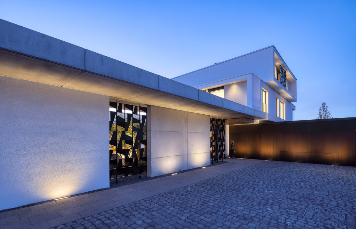 An einem sonnigen Hang des Nordschwarzwalds entstand auf einem Grundstück in bester Lage mit weitem Blick über die Rheinebene ein außergewöhnliches Einfamilienhaus. Die architektonische Idee folgt einem skulpturalen Konzept: Wie ineinander verschobene Boxen sind die Geschosse übereinandergestapelt und in unterschiedliche Himmelsrichtungen ausgerichtet. Dadurch entsteht ein dynamisches, fast futuristisches Erscheinungsbild, das zugleich den Ausblicken und der natürlichen Belichtung optimal Rechnung trägt.